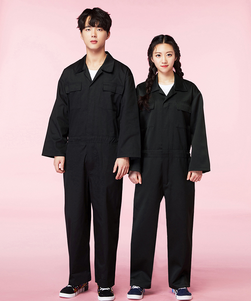 검정 점프수트 (긴긴) (BT-163) (왼가슴, 왼소매, 오른소매 인쇄)