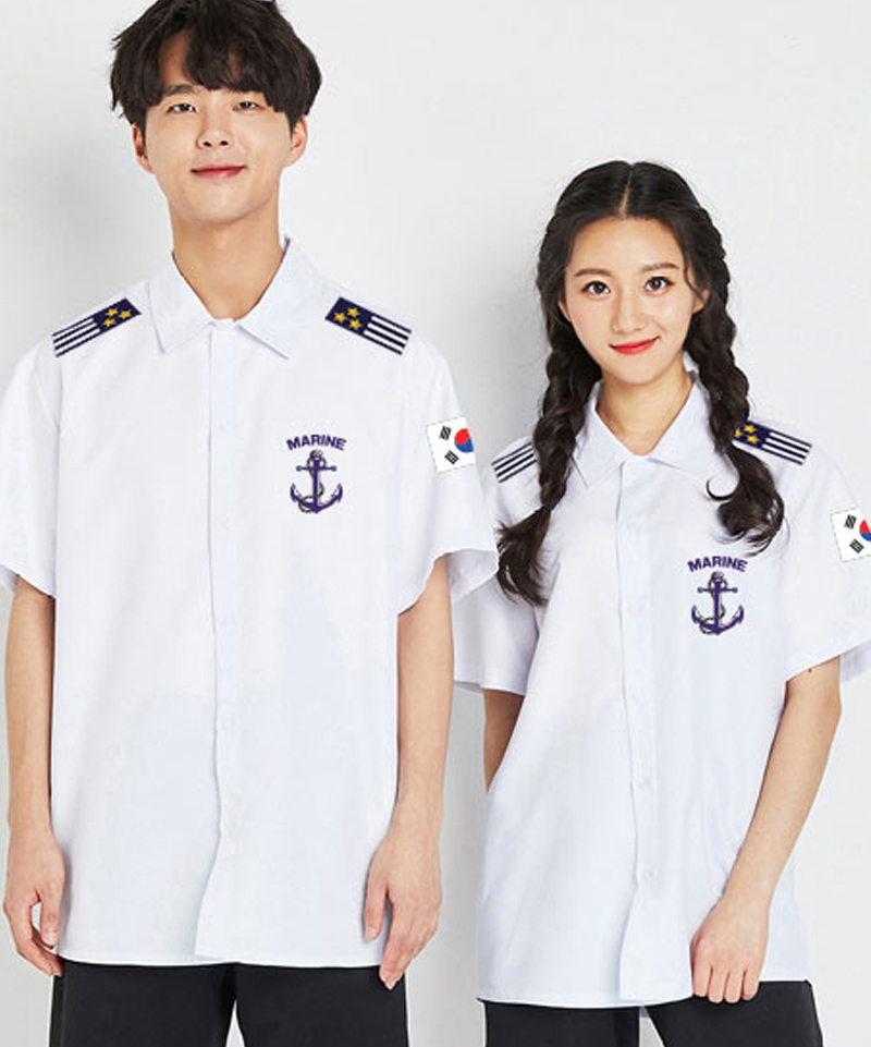 남방 (흰색) 반팔 (BT-112-2) (어깨, 왼소매, 왼가슴 인쇄)