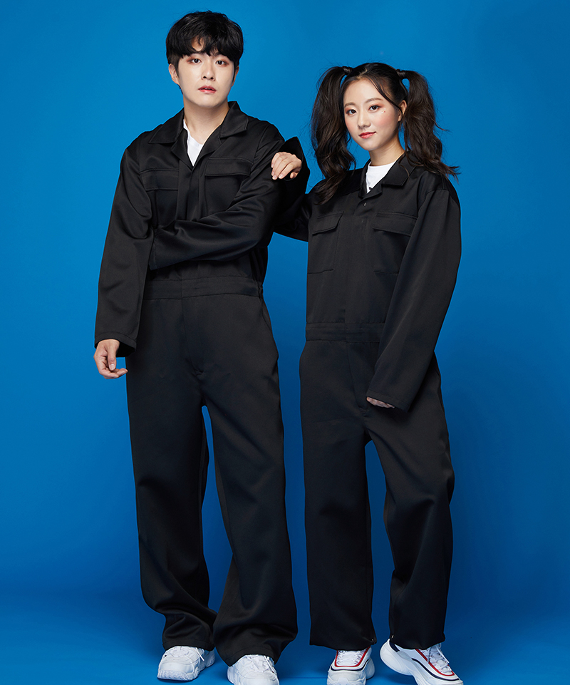 검정 점프수트 (긴긴) (BT-163) (왼가슴, 왼소매, 오른소매, 등전면 인쇄)