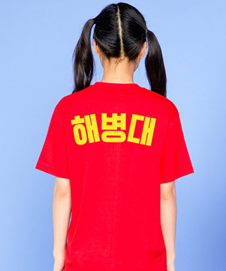 베이직 라운드 티셔츠 레드 (왼가슴, 소매, 등해병대 인쇄)