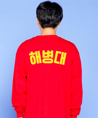 베이직 라운드 티셔츠 긴팔 레드 (왼가슴, 소매, 등해병대 인쇄)