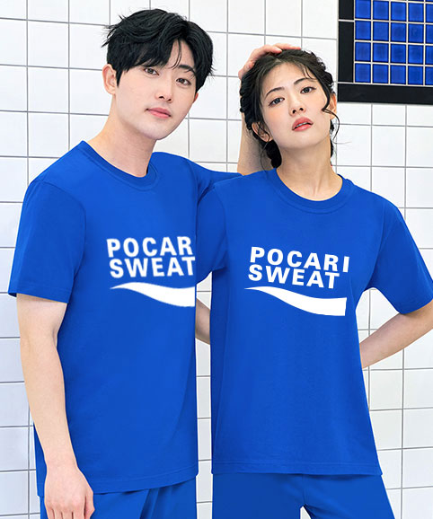 베이직 라운드 티셔츠 블루 (앞전면 인쇄)